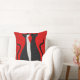 Dois gatos estilizados contra um fundo vermelho brilhante. Um gato é predominantemente preto com cauda curva, enquanto o outro é caracterizado por um centro branco que percorre seu corpo, criando um contraste marcante. Ambos os gatos têm características arredondadas e divertidas, com olhos fechados e expressões contentes, sugerindo um senso de companheirismo e afeto.