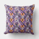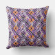 A bold and modern Halloween plaid seamless pattern throw pillow featuring intersecting geometric lines in vivid purple, orange, black, and white tones. The design combines a festive Halloween color palette with a sleek contemporary style. Ideal for spooky-season gifts, trendy Halloween, and modern fall aesthetic lovers.