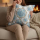 Este design de travesseiro tem uma mistura de diamantes, triângulos, e pequenos detalhes que fluem juntos gentilmente. Se você olhar atentamente, você até vai ver formas de peixe escondidas no padrão — um tom divertido e sutil para a natureza. As cores azul e bege macio se sentem calmas, como a água movendo-se gentilmente. Ele tem aquela mistura perfeita de puro e natural, com uma dica de safra e uma reviravolta moderna. Traz uma sensação inspirada no oceano para qualquer espaço.