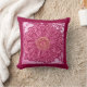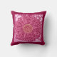 Travesseiro decorativo em um bloco de uma margarida Gerbera, baseado em uma fotografia, transformada digitalmente e pintada à mão - tons de fúcsia cor-de-rosa profundo / burgundy e rosa-casca, com um fundo de marrom / borgonha