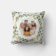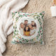Este maravilhoso travesseiro de manutenção de férias da família apresenta uma exuberante e festiva coroa de folhas de ouro, verde de Natal e bagas brancas vermelhas em um simples fundo branco. Sua foto pessoal da família vai ao centro junto com as palavras "Feliz Natal", e até há um lugar para seu nome e para o ano. Um presente perfeito para vovó e vovô ou qualquer outro parente!