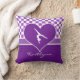 Travesseiro decorativo Checkered da ginástica com um design roxo e branco. Um coração roxo grande tem uma silhueta do gymnast para dentro! Adicione seu próprio texto antes que você peça! Adicionalmente, use "personalizam-no" botão para alcançar mais opções, incluindo uma pia batismal diferente!