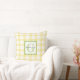 Decore o quarto da sua criança com esta almofada encantadora que apresenta um padrão de ginga amarelo e branco com detalhes de borda rendilhada na moda, bolinhas divertidas e um monograma personalizável. Este design clássico irá complementar qualquer estilo de decoração, tornando-o um adição versátil para o quarto de um bebê, criança ou menina. Personalize a almofada com uma inicial e nome para adicionar um toque pessoal ao espaço de uma criança jovem.