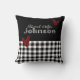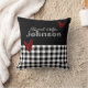O design de travesseiro gingham da Sra. Monograma mostra seus nomes em letras festivas de mão e o padrão popular de verificação de búfalos de feriado para seu sobrenome em preto e branco. Os sotaques são xadrez de búfalo vermelha e preta. A metade inferior do recurso de travesseiro que corresponde à verificação de búfalos preto e branco / padrão de gingham e a metade superior é preta. Com todo aquele vermelho e verde em volta da casa nos feriados, certamente este travesseiro preto e branco se destacará! #BuffaloPlay #Gingham #BuffaloCheck