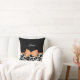 Um travesseiro decorativo de girafa preto e branco, com uma fita laranja giratória, presa em um arco de na moda. Personalize este design de impressão de animais modernos adicionando seu nome. O lado inverso tem um padrão de girafa preto e branco. Imagem impressa plana, não arco real.