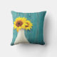 Girassóis plantados sobre uma prancha de madeira rusticada, pintada em azul-de-vidro marinho. Personalize para seu gosto!