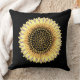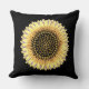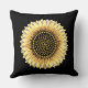 Grande girassol, corações e bolinhas ouros em Travesseiros decorativos pretos. Travesseiros decorativos elegantes. Bela decoração.