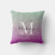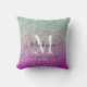 Girly Aqua Blue Pink Ombre Glitter Monograma Travesseiro decorativo