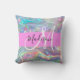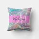 Nome do monograma holográfico iridescente e travesseiro inicial. Seu nome personalizado e monograma são escritos em um elegante roteiro escrito à mão com um fundo rosa. Um aniversário perfeito ou presente de Natal!