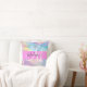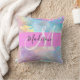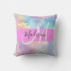 Nome do monograma holográfico iridescente e travesseiro inicial. Seu nome personalizado e monograma são escritos em um elegante roteiro escrito à mão com um fundo rosa. Um aniversário perfeito ou presente de Natal!