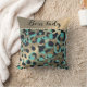 Pontas-leopardo azuis e pretas num pano de fundo de ouro brilhante com uma borda de colar de pérolas douradas onde está uma borda brilhante dourada onde você pode personalizá-la com um nome, frase ou logotipo ou você pode mantê-la como está com as palavras "Senhora Chefe". Tema do leopardo de gema.