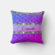 Neste travesseiro de na moda é um padrão de sereia em um pano de fundo cor-de-rosa quente e roxo ombre com brilho prateado no topo e uma faixa brilhante prateada e rosa no meio adornada com diamantes prateados brilhantes onde você pode personalizá-lo com um nome, logotipo ou letra. Víblias de vidro elegantes.