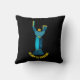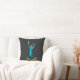 O design travesseiro decorativo dedicado às pessoas da Ucrânia apresenta uma versão abstrato moderna do icônico Monumento da Terra-Mãe Ucraniano em Kiev, em tons de azul e amarelo (as cores da bandeira da Ucrânia) com "Glória à Ucrânia" texto curvo sobre fundo negro.
