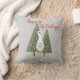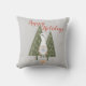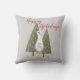 Gnomo da Floresta de Natal Felizes Festas Cinza Almofada de Arremesso. Torne sua casa mais festiva para as festas de fim de ano com esta almofada de arremesso de gnomo fofa e elegante! Cena de floresta de inverno apresentando um gnomo escandinavo de pernas finas segurando um passarinho azul fofo na frente de pinheiros. Em tipografia vermelha bonita está a citação "Felizes Festas". Fundo cinza.
