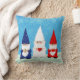 Gnomos de Natal bonitos modernos vestidos de vermelho, azul e branco no Travesseiro azul-céu. Feliz Natal!