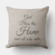 Available in multiple sizes and fabric options for a cozy yet inspirational home accent. Elegant and customizable God Bless This Home And All Who Enter script typography in Simple Faux Natural Linen textured background.