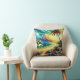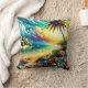 Vista colorida de abstrato, palmeiras, pedras de praia no pôr do sol. Linda arte tropical do pôr do sol.