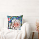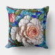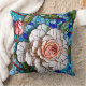 Travesseiro decorativo maravilhoso com um padrão floral de mosaico azul e cor-de-rosa impressionante, com azulejos vibrantes azuis, cor-de-rosa e vermelhos, com rosas coloridos de coral interligados com folhagem verde. O intricado design mimetiza o olhar de um vidro colorido e azulejos cerâmicos de design mosaico, criando uma elegante e eterno estética.
