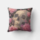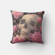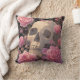 Um travesseiro decorativo de Halloween de inspiração gótica, com um crânio detalhado rodeado de rosas e borboletas cor-de-rosa, com um tom romântico suave. Este design combina o estilo gótico escuro com um toque de beleza floral para tornar o seu decoro de Halloween inesquecível.