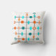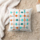 Este travesseiro decorativo tem um design moderno do século médio de uma grade em linhas pretas com círculos laranja e lacrimogêneo e diamantes.