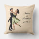 O casal giro que agarra este travesseiro tem texto personalizável. Ela é adorável em seu vestido de seda verde, acompanhado por um menino apper em um casaco de cauda. Basta alterar os nomes de exemplo e a data para seu próprio nome ou texto.