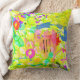 Este travesseiro tem pinceladas de verão, incluindo: amarelo, verde limão, rosa, laranja, turquesa, aqua, preto, coral, azul e muito mais. Usei camadas sobre camadas de cores e texturas em graus variados de opacidade para dar essa profundidade e o mais importante...DIVERSÃO!