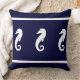 Design por Sandy Closs. parte do oceano náutico temido branco de decoração no TRAVESSEIRO marinho SEA HORSE de um lado e marinho atrás. designs náuticas perfeitas para a vida costeira, decor de lago, decor de rio e mais...
