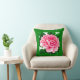Travesseiro decorativo em uma grande imagem de uma flor de uma colônia, em tons de rosa-coral pastel a médio, com folhas verdes esmeraldas