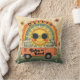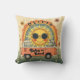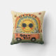 Este travesseiro decorativo de berçário inspirado na década de 70 apresenta um sol quente e sorridente com óculos de sol sobredimensionados, arco-íris groovy, margaridas, e uma carrinha VW retrô com "Baby on Conselho".