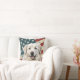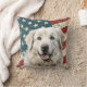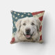 Um belo retrato de aquarela de um Cachorro Pirenéus Excelente é colocado contra um fundo de terra firme da bandeira dos EUA. Ambos os lados do travesseiro têm a mesma imagem.
