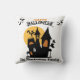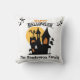 Celebrar a estação assustadora com este travesseiro decorativo com o tema do Dia das Bruxas com uma casa assombrada, bruxas voadoras, morcegos e fantasmas amigáveis. Perfeito por adicionar um toque festivo à sua decoração. O texto na parte inferior é personalizável, para que você possa adicionar seu próprio nome de família ou mensagem especial.