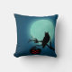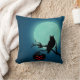 Noite de Halloween com coruja e abóbora em um galho em frente à lua de cheio.
