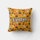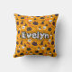 Adicione um toque festivo à sua casa com este travesseiro personalizado de Halloween que apresenta um padrão divertido de gatos pretos, chapéus de bruxas, crânios, doces e luas. Personalize-o com seu nome (exemplo: Evelyn) para uma decoração única e divertida. Perfeito como presente de Halloween, decoração sazonal em casa ou travesseiro de sotaque aconchegante.