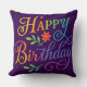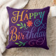 Almofada Happy Birthday Floral Rainbow Throw Pillow 20"x 20