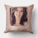 Celebrate a milestone with a touch of elegance! This chic Happy Birthday throw pillow features a stunning rose gold glitter aesthetic with a stylish metallic gradient. Designed to make memories last, it includes a central custom photo placeholder so you can feature the birthday girl’s favorite portrait.