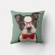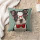 Ilustração bonito de um filhote de cachorro do terrier de Boston do estilo do hipster que veste vidros do olho e o laço vermelho chique no fundo azul. Projetado por Maryline Cazenave.
