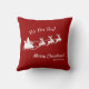 Adicione um toque sazonal divertido à sua casa com este travesseiro decorativo vermelho e branco personalizado. O travesseiro decorativo apresenta fundo vermelho com saudação de Feliz Natal e texto de Ho Ho Ho, seu sobrenome familiar e Papai Noel voando no trenó com renas. Este travesseiro decorativo também faz um excelente personalizado de aniversário, chá de panela, casamento, Natal ou outro presente de feriado.