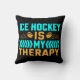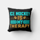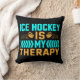 O travesseiro decorativo do tema do hóquei com pedras de hóquei e texto que lê Hockey é minha terapia!