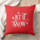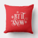 This holiday throw pillow is shown with a let it snow snowflakes print.