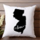 Nosso travesseiro personalizado adorado com o Estado de Nova Jersey, atrás é xadrez branca e negra. Veja nossa linha de produtos de cheio em nossa loja Zazzle.