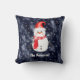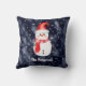 Almofada Homem de Neve Natal no Fundo de Neve Azul Escuro