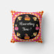 Travesseiro redondo personalizável, com um modelo de texto, xadrez laranja e cor-de-rosa. Este travesseiro de outono apresenta, desenhados à mão e design digitalmente, texturas em folha, folhas de outono e abóboras cor-de-rosa e laranja. presente de chá de fraldas excelente e decoração de um quarto de quarto. Travesseiro perfeito do outono para meninas que adoram adicionar um toque balbucioso ao seu quarto. Se o desejo mudar "Tempo de Colheita!" com o seu texto preferido.