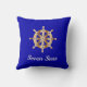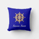Um clássico fundo azul real. Decorado com volante de ouro falsa. Personalize e adicione o nome do barco.