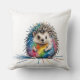 Ein freundlicher Igel in bunten Farben, eine kindliche Zeichnung eines Igels, mit Tusche und Kreide, gekleckst und geschmierte ist die Farben als Stil und Effekt des lustigen Bildes.