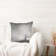 Coxim do travesseiro decorativo da foto com uma igreja ou uma capela pequena em um monte sob nuvens movimento-borradas no céu em preto e branco criando uma imagem conceptual muito forte de manter a fé em épocas ásperas.