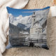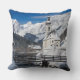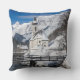 travesseiro decorativo de fotos com a famosa Rua. Igreja Sebastian na neve apoiada por montanhas alpes altos com uma ponte e um pequeno riacho em Ramsau b. Berchtesgaden, perto da Áustria, no inverno.