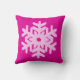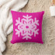 Um padrão delicado, de flocos de neve de lata, sobre fundo sólido, com uma textura tecida Ikat estriada - cor-de-rosa-gelo leve / floco de neve rosa-pimenta sobre um travesseiro quadrado cor-de-rosa de fundo fuchsia profundo