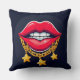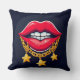 Ilustração vívida com lábios vermelhos brilhantes adornados com estrelas amarelas em um fundo azul, evocando uma sensação de estética moderna, artística e ousada.