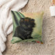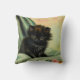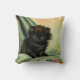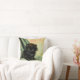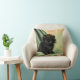 Travesseiro com um gatinho preto adorável! O gatinho de olhos verdes senta-se num cobertor com uma flor rosa. Um belo presente para amantes de gatos e entusiastas de arte vitorianos!