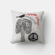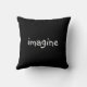 " Imagine" o travesseiro artística. Preto e que rotulação do fundo com árvore, o pássaro preto e uma explosão de corações vermelhos com símbolo de paz projetam. Para trás do travesseiro é preto com a palavra "imaginam".